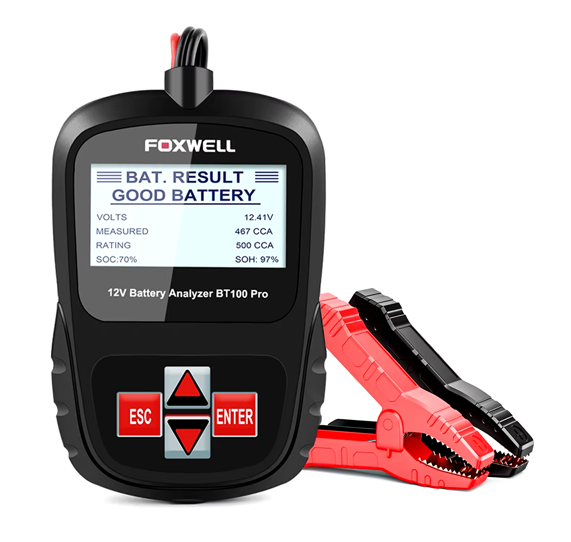 El **analizador de baterías Foxwell BT100** es una herramienta precisa y asequible para probar baterías de 12V, incluyendo tipos inundados, AGM y de gel. Con un rango de prueba de 30-200 Ah y 100-1100 CCA, es ideal para técnicos y propietarios de vehículos que buscan diagnosticar rápidamente el estado de la batería.