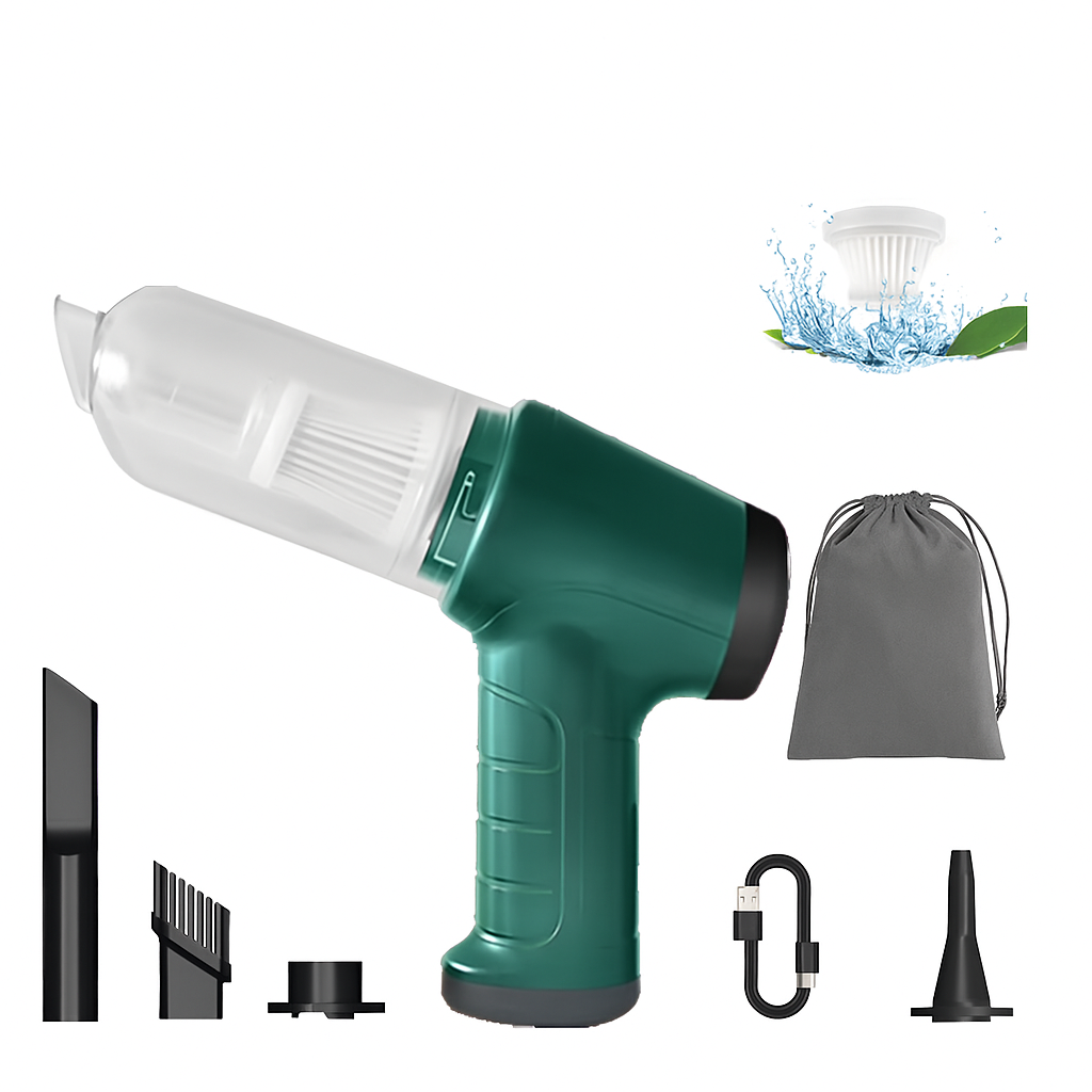Descubre la comodidad y eficiencia de esta Aspiradora/Sopladora Gotech, diseñada para ofrecerte la máxima limpieza en tu hogar y automóvil. Gracias a su potente succión de 8000Pa, elimina con facilidad polvo, migas, pelos de mascotas y pequeñas partículas, garantizando un entorno más limpio y saludable en cuestión de segundos. Ya no tendrás que preocuparte por la suciedad diaria, porque esta aspiradora hace el trabajo por ti, rápida y eficazmente.