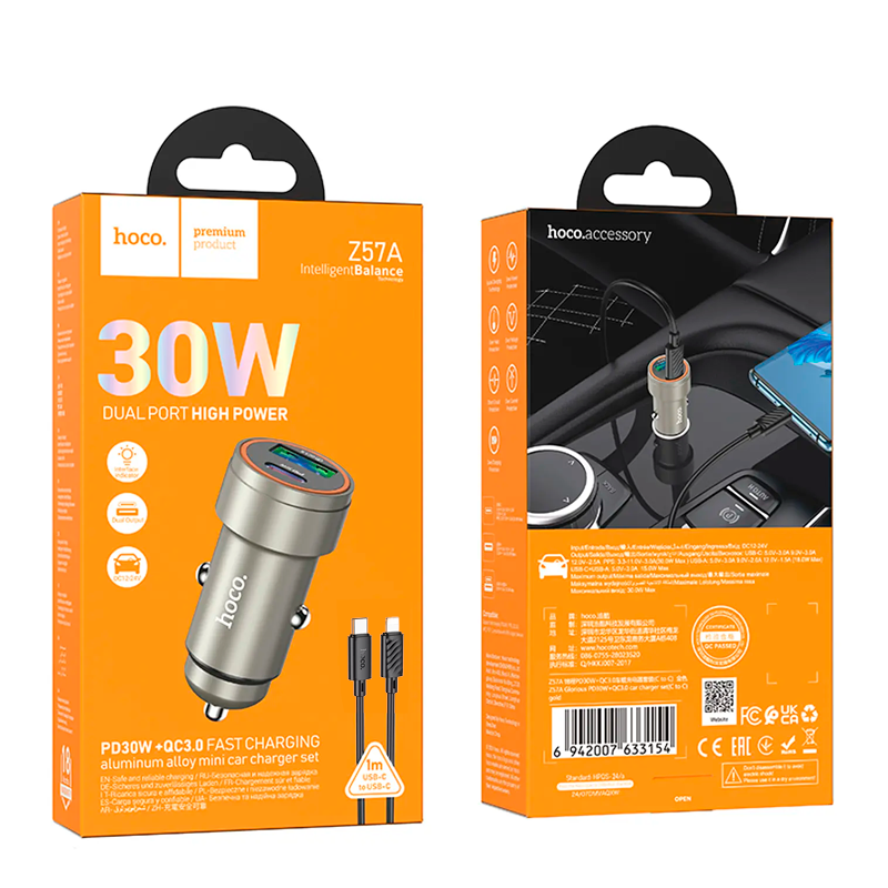 Cargador De Auto Dual Usb Tipo C Hoco Z57a 30w + Cable Para Lightning