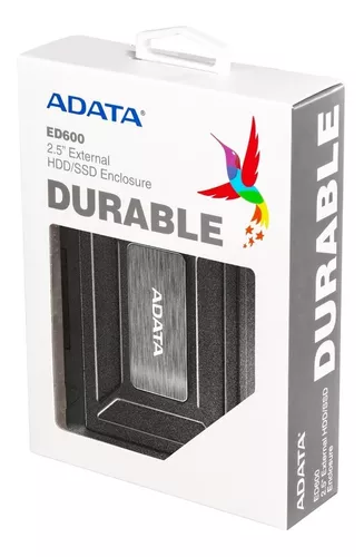 ADATA COFRE DE DISCO DURO ED600 DE 2,5″, USB 3.2 GEN 1, NEGRO La carcasa externa ED600 es una carcasa robusta y duradera con un diseño con recubrimiento interno de goma de silicona resistente a los impactos y con un índice de impermeabilidad y resistencia al polvo IP54 que protege diferentes modelos de unidades de disco duro o unidades de estado sólido de 2,5. La carcasa ED600 es compatible con equipos portátiles, equipos de sobremesa, PS4, XBOX One y otras consolas de videojuegos. La instalación sin necesidad de herramientas y el conmutador de un solo botón hace que sea accesible incluso para principiantes en informática. ¡La carcasa ED600 es la unidad de disco duro o unidad de estado sólido externa esencial para proteger sus datos!. Compatible para SATA de 2,5″ de 9,5/7 mm