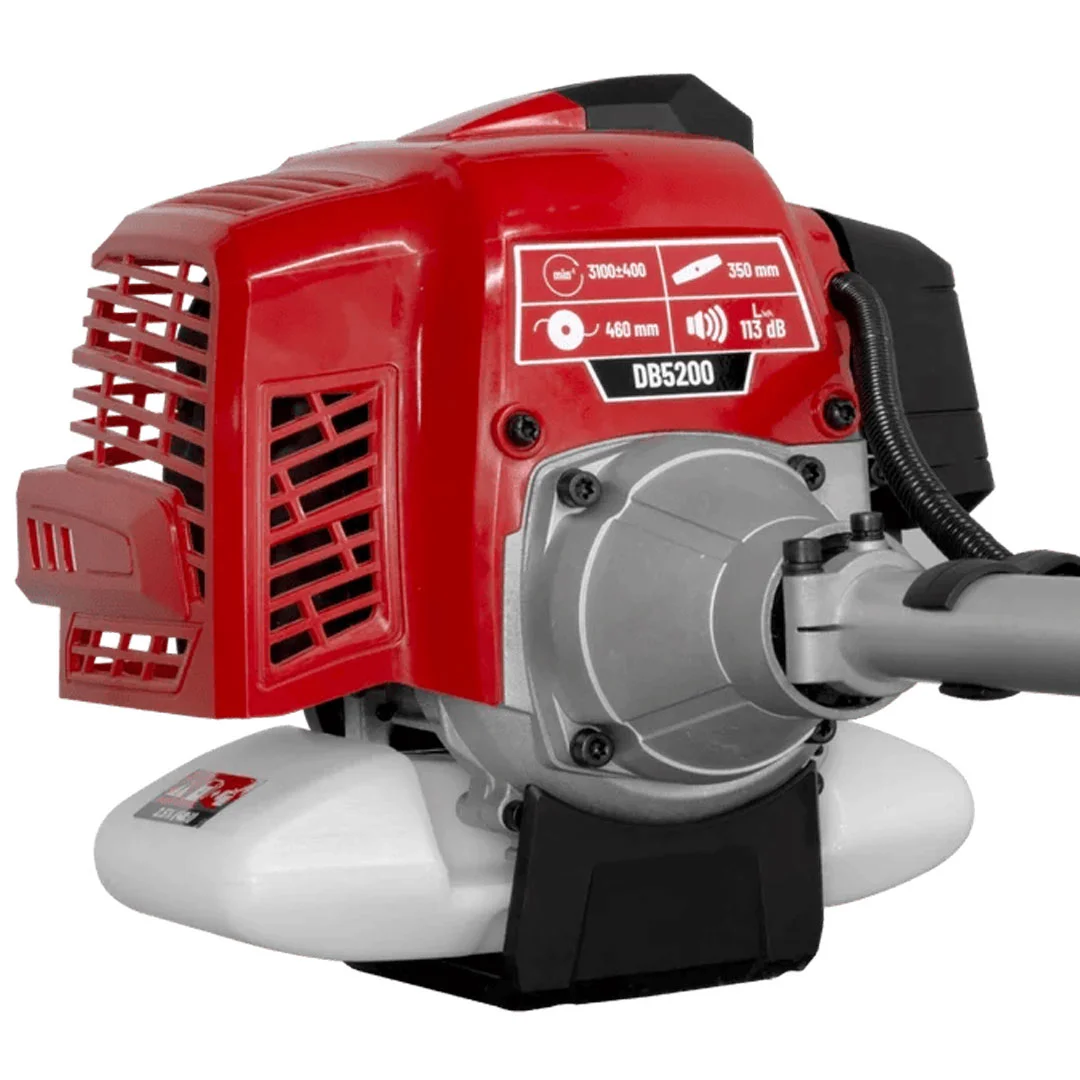La Desbrozadora BELLOTA DB5200 de motor a combustión 2 tiempos (BELLOTA 7GASBC52), con su poderoso motor de gasolina con 51.7 cc enfriado por aire, 2 HP de potencia y velocidad máxima de 9,500 RMP domina la naturaleza salvaje con facilidad, transformando tu entorno en un oasis de belleza con su potencia y alta precisión mediante su sistema anti vibratorio logrando un corte limpio de hierbas altas, arbustos rebeldes y maleza, dejando el espacio al aire libre limpio y ordenado en cuestión de minutos por medio de su cabezal con hilo 2.5 mm o su cuchilla recta de 350 mm fabricada en acero. Controla y manipula el movimiento libremente con su arnés profesional que se ajusta a la altura de tus necesidades y su gancho de liberación rápida, junto a su maneral de 1.40 metros de largo con diámetro de 28 mm.