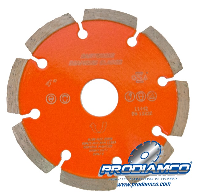 - Disco diamantado de 4″ X 8 segmentos.