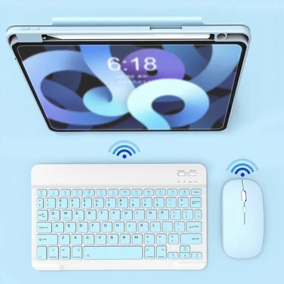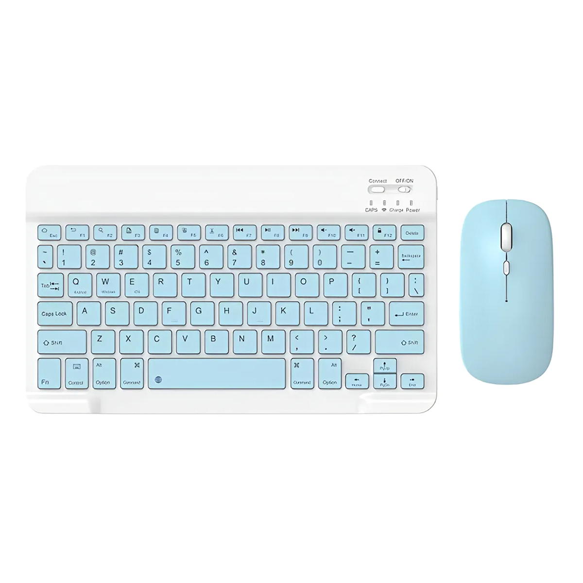 Kit Teclado + Mouse Mini Inalámbrico Bluetooth Español Celeste
