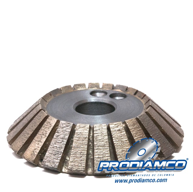 • Muela diamantada tipo TURBO Chaflán a 45 Grados para el canteado de vidrio de 15mm de espesor.