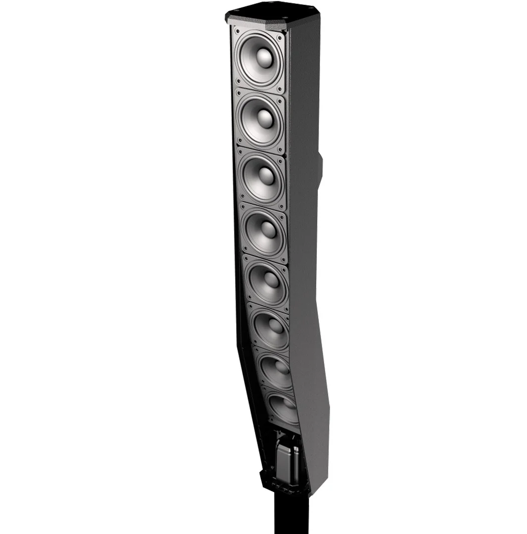 Ocho controladores de neodimio de 3,5″ en la matriz de columnas junto con el subwoofer de 12″ ofrecen hasta 127 dB SPL. Las ocho guías de onda compuestas controlan altas frecuencias con 120° de cobertura horizontal y 40° de cobertura vertical asimétrica (orientada hacia abajo) para garantizar una salida adecuada para el público sentado y de pie. El sub poste y el conjunto de columnas vienen preenvasados en una bolsa de transporte.